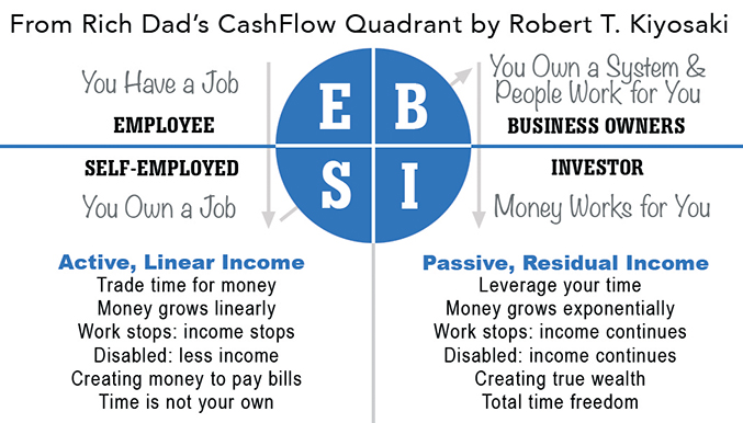 Source: Rich Dad Poor Dad and Cashflow Quadrant by Robert Kiyosaki